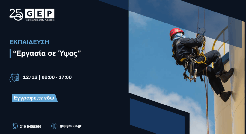 - Face-to-face training conducted at GEP’s specially designed facilities, which meet the specifications of the British Standard BS8454 (Code of Practice for the Delivery of Working at Height and Rescue Training) and Greek Legislation. The course includes both theoretical and practical training on safe working at height and rescue procedures.