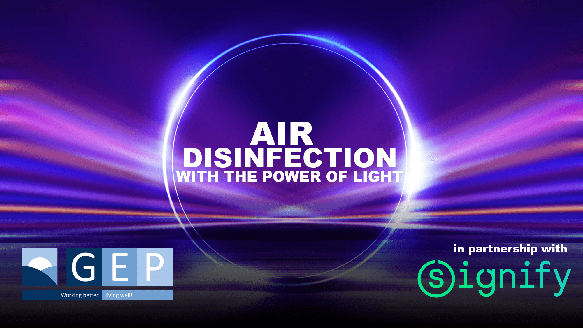 Συνδυάζοντας τα 35+ χρόνια εμπειρίας της Signify στην χρήση τεχνολογίας UV-C και τα 20+ χρόνια εμπειρίας της GEP στο χώρο της Υγείας & Ασφάλειας, συνεχίζουμε να είμαστε δίπλα σας στις προκλητικές αυτές ημέρες, φέρνοντας λύσεις με επιστημονική τεκμηρίωση ώστε να εξασφαλίζεται η επιχειρησιακή συνέχεια και να προάγεται η υγεία και ασφάλεια σε κάθε οργανισμό.